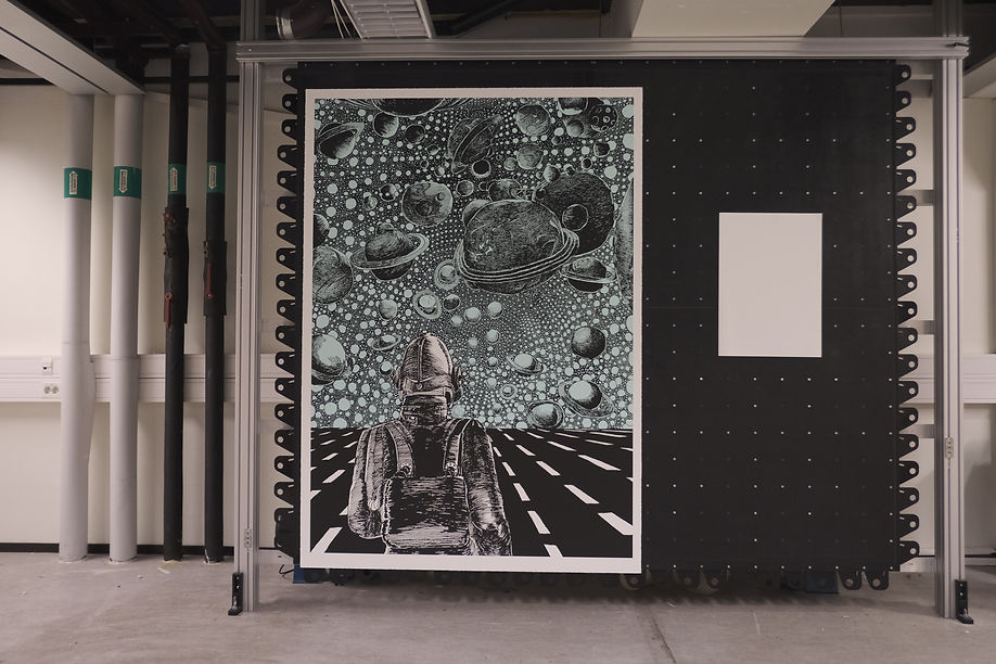 Over flere dager ble hundrevis av kilo med deler som utgjorde vakuumveggen produsert. Å finne det riktige materialet var en utfordrende del av dette prosjektet. Materialet måtte være lite påvirket av endringer i temperatur og lufttrykk, ikke for vanskelig å bearbeide, og det måtte være nøytralt i sammensetningen, slik at det ikke forurenset kunstverkets delikate papir. Til slutt ble High-density polyethylen valgt for sine nøytrale egenskaper.
